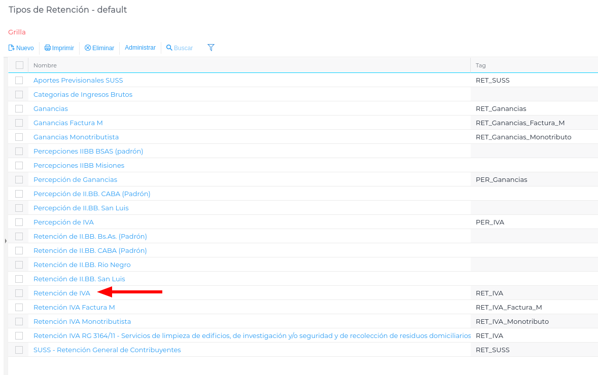 PASO 1 ⇾ Ingresar al maestro de Tipos de Retención
