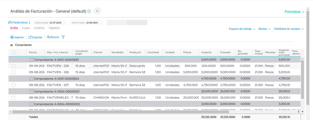 El análisis de facturación te permite ver en forma detallada el estado de tus ventas y obtener la información más relevante, referida a ellas. Podríamos decir que este informe es un histórico de todas las ventas que realizó tu empresa.