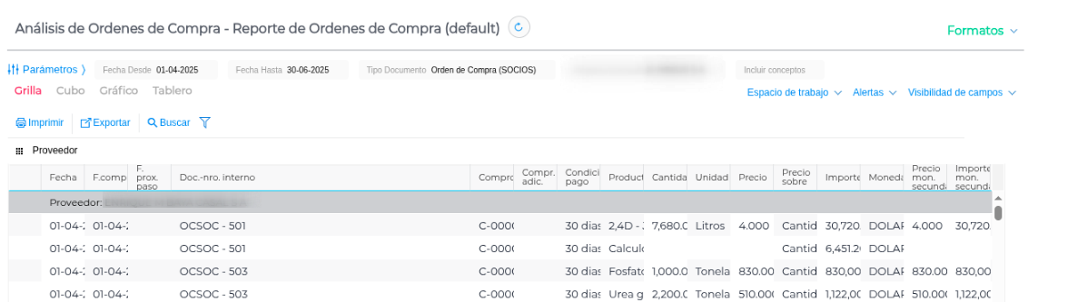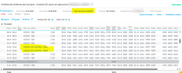 - Ingresar al informe → Análisis de Órdenes de Compra.