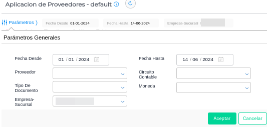 Empresa-Sucursal: si se desea se puede filtrar por Empresas o sucursales. Si se deja vacío, traerá el dato de todas las empresas o sucursales.