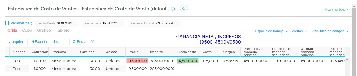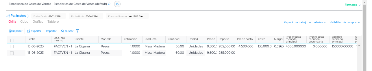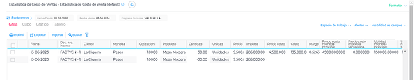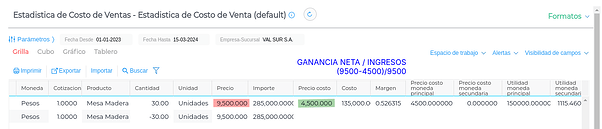 Siguiendo estos pasos, podrán visualizar el informe de manera tal que podrán obtener la información necesaria, concreta, para los análisis sobre el costo de los productos.