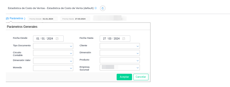 Empresa-Sucursal: se indica la sucursal que se quiere visualizar en el informe.