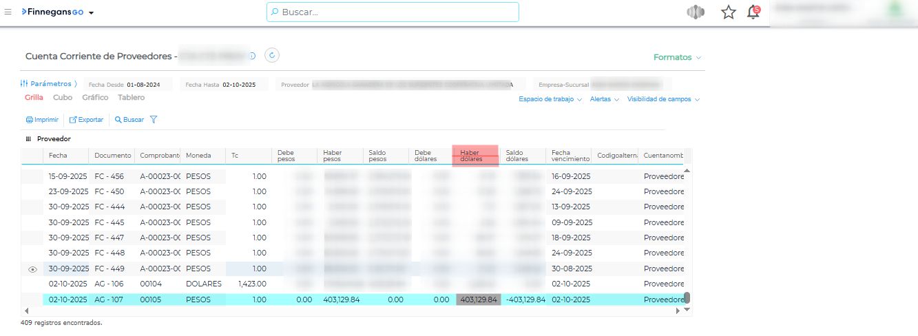 ¿Por qué cuando ingreso al Informe de Cuentas Corrientes de Proveedores veo que en un asiento genérico realizado en pesos me calcula una cotización en dólares?