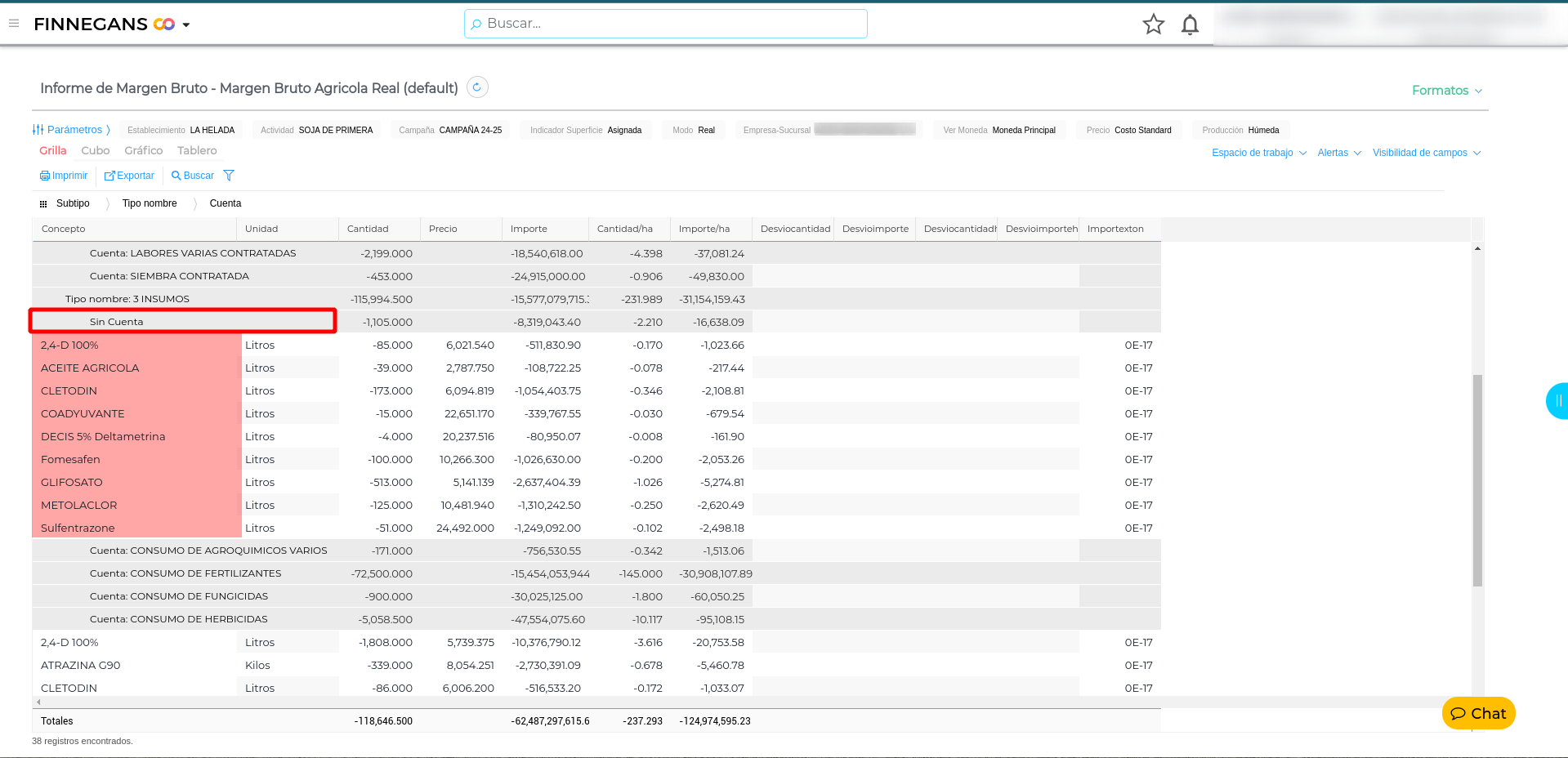 Al consultar el Informe de Margen Bruto podemos observar que hay conceptos que se agrupan “sin cuenta”: