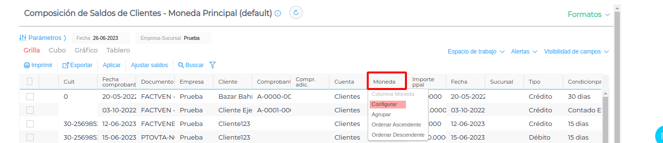 1- Hacer click sobre la columna que no queremos visualizar en la impresión y seleccionar la opción “configurar”
