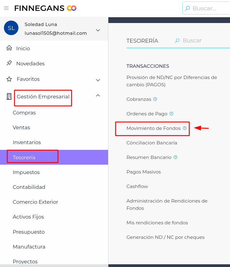- Ingresar al informe , en este Ejemplo ingresamos al informe de Tesorería - Movimientos de fondos.