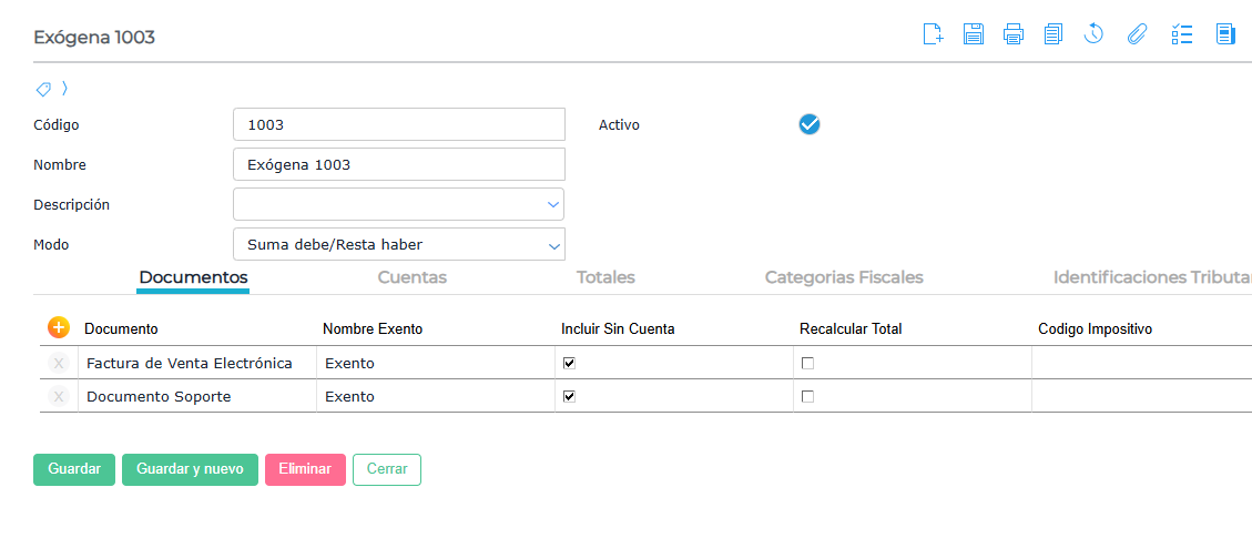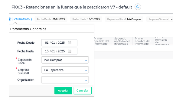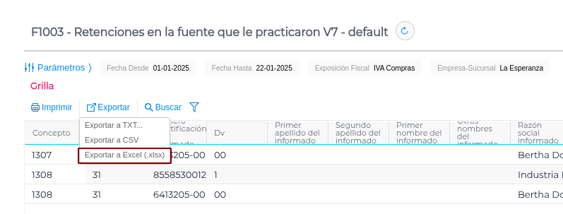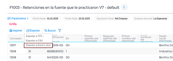 Crear una Exposición Fiscal Exógena 1003 incluyendo todos los documentos que practiquen retenciones (documentos soporte, factura de venta, etc.)