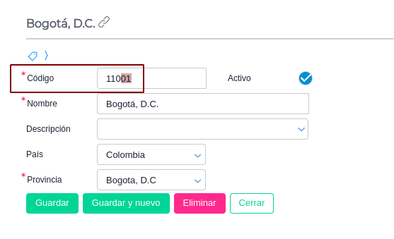 Corresponde al código configurado en el maestro de Provincias del departamento cargado en el domicilio fiscal del proveedor/cliente de la transacción