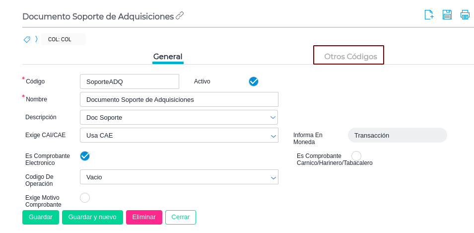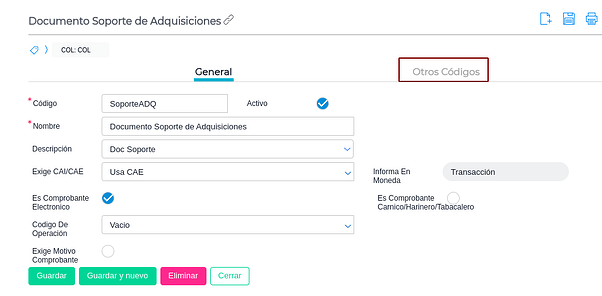 En el maestro comprobante tipo impositivo ingresar a los comprobantes de tipo impositivo que se encuentran configurados en los talonarios de los documentos configurados en la exposición fiscal y completar el código adicional TIPO_DOC