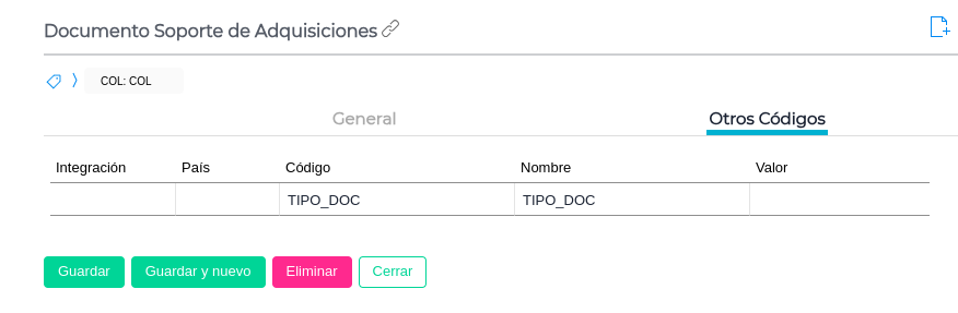 Campo Tipo de documento