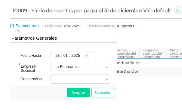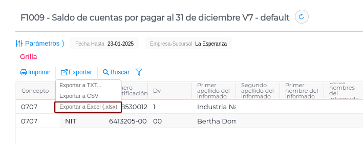 En este informe se detallan los saldos de las cuentas por pagar al 31 de diciembre del año gravable anterior.