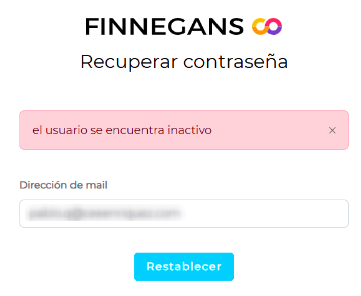 ¿Por qué motivo Finnegans emite un aviso que dice EL USUARIO SE ENCUENTRA INACTIVO cuando en realidad el usuario sí se encuentra activo?