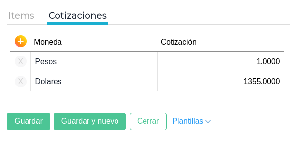 - Moneda principal y secundaria: configuradas a nivel de empresa.