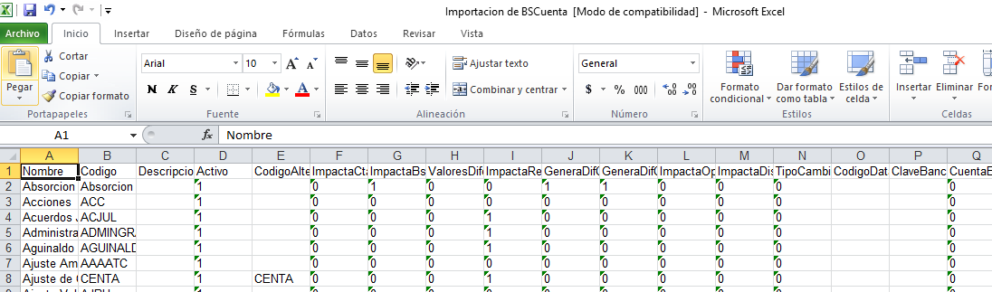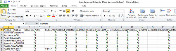 No deben modificarse los códigos de las cuentas en la planilla de cálculo a importar. Esta acción no sobreescribirá las existentes sino que agregará nuevas cuentas en el sistema.