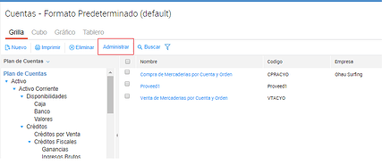 El plan de cuentas viene preconfigurado con un conjunto de cuentas comunes a todos los modelos.