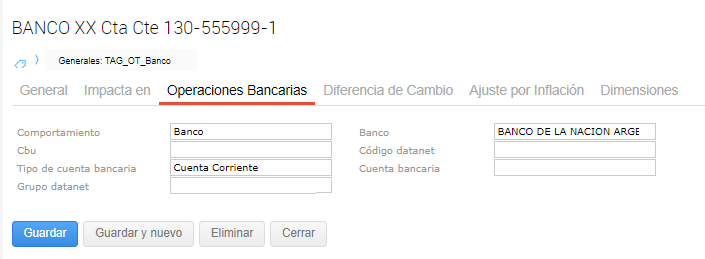 Similar a la configuración de una cuenta de banco. Solo cambia la solapa operaciones bancarias: