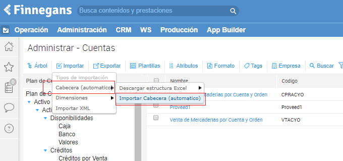 Las nuevas cuentas al importarse se ubicaran en la raíz. Luego deberán acomodarse manualmente. No es posible importar su ubicación en el árbol del plan de cuentas.