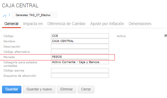 TAGS: Las cuentas de disponibilidades deben tener el tag “OT_Efectivo”. Una vez creada la cuenta debe aplicarse el TAG.