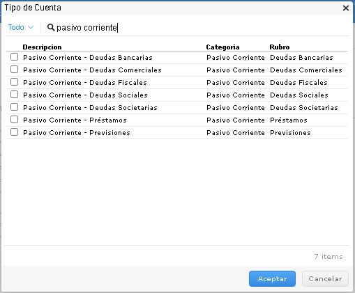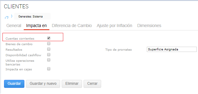 Este tipo de cuentas requiere que la solapa “impacta en” este marcado el check” cuenta corriente. Cuando se utilice una cuenta de este tipo se exigirá indicar un tercero. Por consiguiente poder ver una cuenta corriente del mismo.