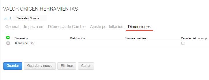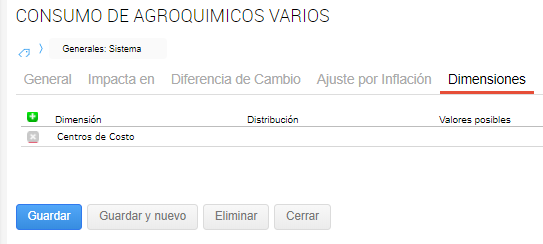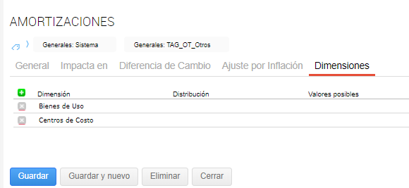 Además de lo expresado anteriormente para las cuentas de resultados, requiere tener configurada la dimensión “bien de uso”