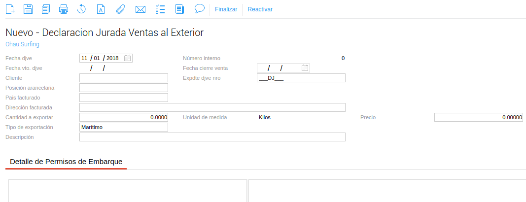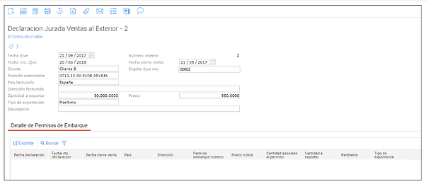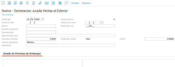 Fecha Vto DJVE: según lo configurado en el maestro Posiciones Arancelarias en el campo días vencimiento DJVE, al completar Fecha cierre de venta el sistema calcula automáticamente este campo. (fecha DJVE + dias vencimiento DJVE)