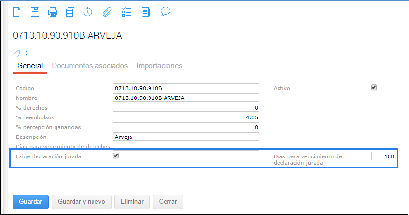 Posición arancelaria: en este campo se ingresa la Posición Arancelaria para la cual se genera la DJVE. Solo se propondrán posiciones arancelarias que tengan marcada la opción Exige DJVE en el maestro correspondiente.