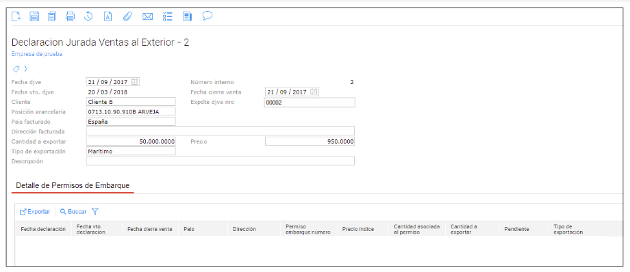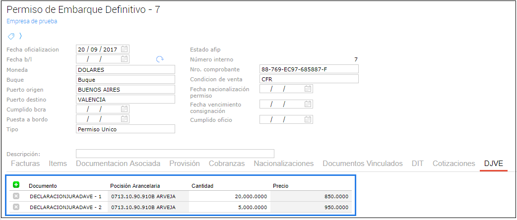 En la parte inferior de cada transacción DJVE se podrá ver un detalle de los permisos de embarque relacionados a esta DJVE.