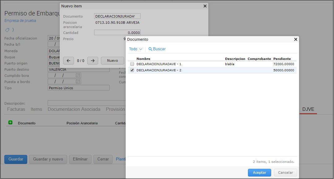 - Una DJVE podrá estar en más de un permiso de embarque.