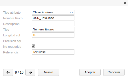 Completá el campo “Tipo de atributo” con “Clave Foranea” (ver imagen).