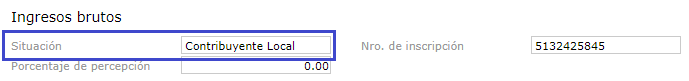 Condición frente a Ingresos Brutos: Muestra un código según la tabla SIPRIB según lo indicado en el campo Situación del apartado Ingresos Brutos del maestro de Clientes.