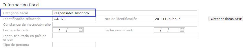 Situación frente a IVA: Corresponde con la Categoría Fiscal del tercero.