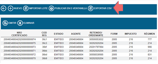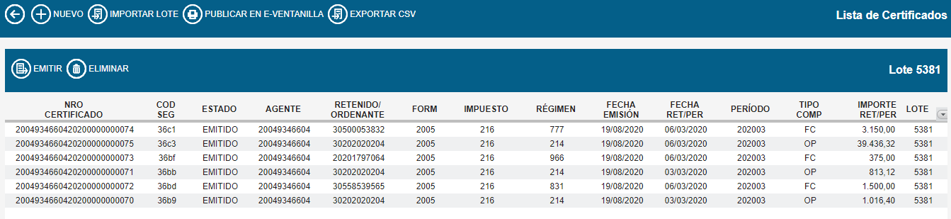 El sistema traerá los datos necesarios en las columnas “Motivo emisión”, “Certificado original nro”, “Certificado original fecha retención” y “Certificado original importe”.
