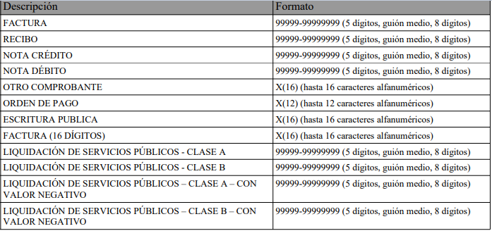 Nro. de comprobante: mostrará el nro. de comprobante del documento, según el formato que indica AFIP: