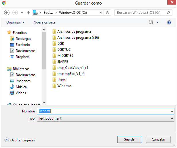 para guardar la exportación en formato .txt en la ubicación que se desee: