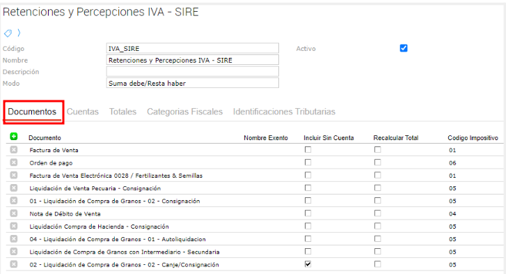 Se destaca que en caso de que desde AFIP indiquen que las transacciones agropecuarias deban informarse mediante el SIRE y ya no por SICORE (actualmente no están incluídos dichos regímenes), los documentos deberán informarse con el código “05” (otro comprobante). Así mismo, los documentos de liquidaciones de granos que involucren canje deberán tener tildado el check “Incluir sin cuenta”.