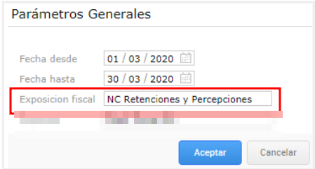 Exposición fiscal: se selecciona la exposición fiscal pertinente a los documentos que originan la percepción/retención (no se incluyen notas de crédito).