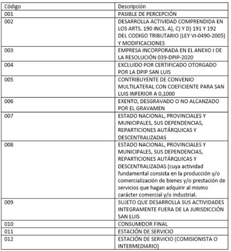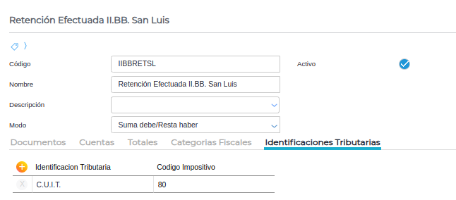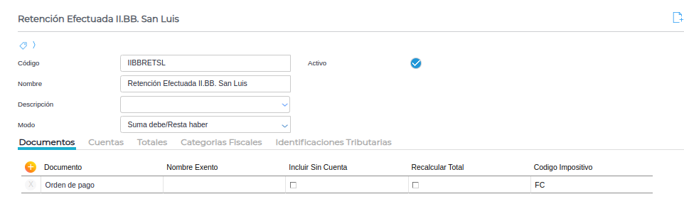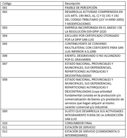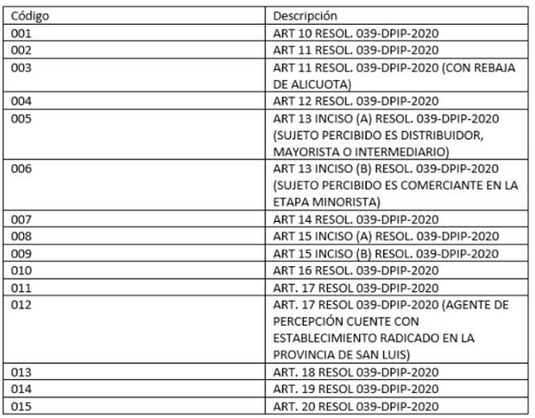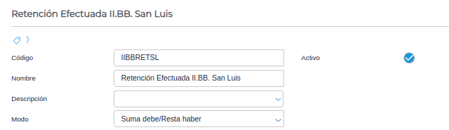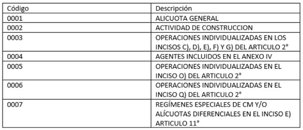 Concepto: traerá el código impositivo configurado en cada retención, dentro del Tipo de Retención. Deberán indicarse en cada retención un código según corresponda: