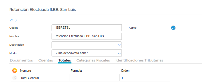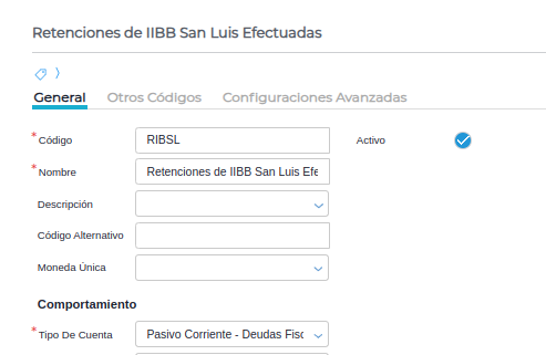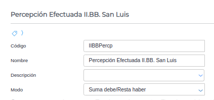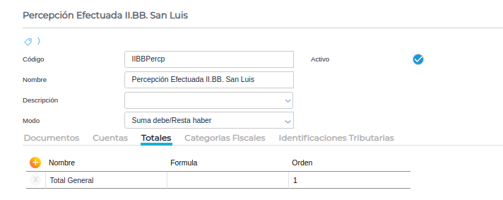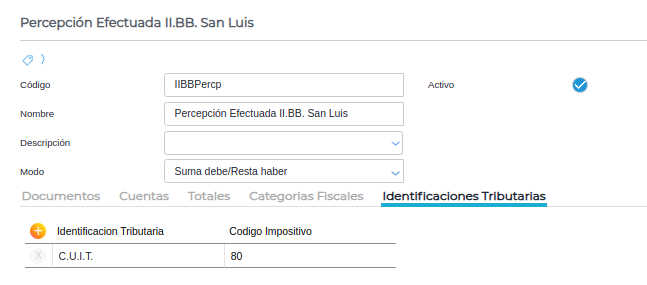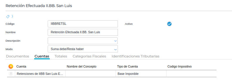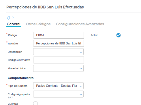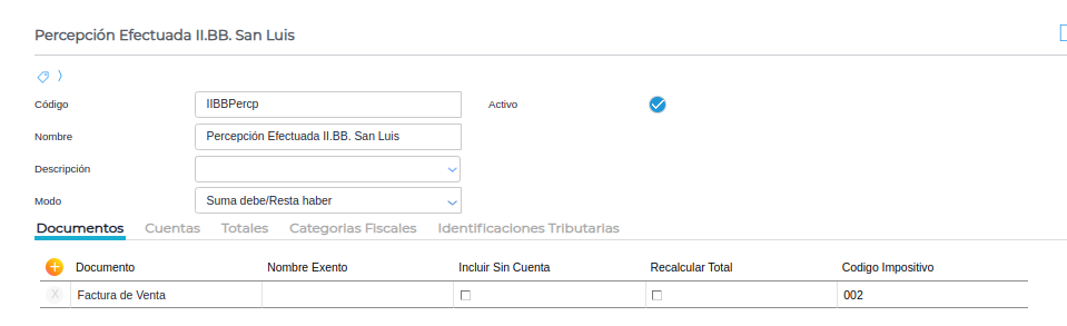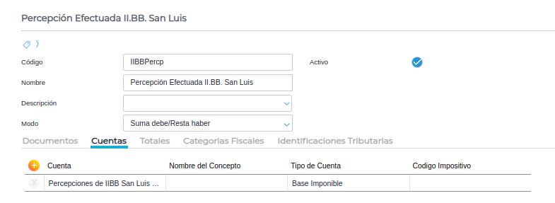 En esta solapa se agrega la cuenta de percepción configurada anteriormente.