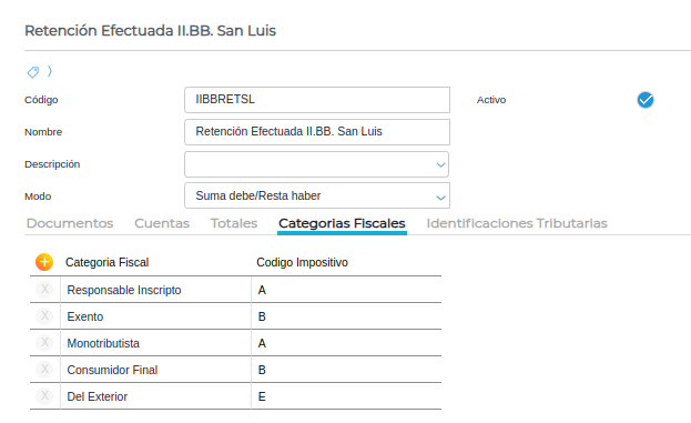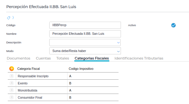 - Solapa “Categorías Fiscales”