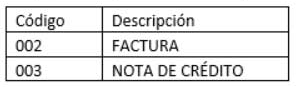 Tipo de Comprobante: Muestra el código configurado para el comprobante en la exposición fiscal. Se configura según el comprobante se relacione con facturas o notas de crédito: