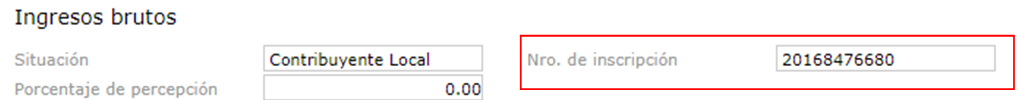 Ingresos Brutos: muestra el nro. de Ingresos Brutos configurado en el maestro de Clientes.