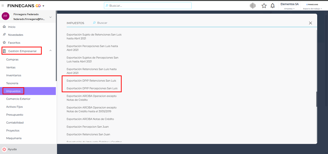 Con Finnegans es posible realizar la exportación de las percepciones y retenciones efectuadas correspondientes a Ingresos Brutos de la provincia de San Luis.