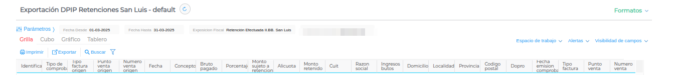 , el sistema traerá todos los terceros a los cuales se les realizaron retenciones de IIBB San Luis en el período seleccionado: