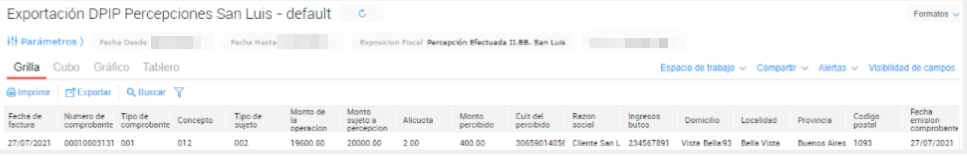 , el sistema traerá todos los terceros a los cuales se les realizaron percepciones de IIBB San Luis en el período seleccionado: