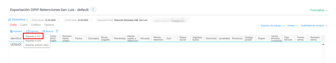 Exportación de retenciones DPIP