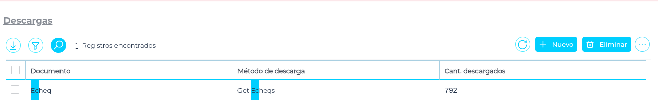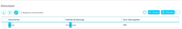 2-En la grilla Descargas se ven los métodos activados en ese espacio de trabajo. Para activar uno método, presionamos el botón “Nuevo”