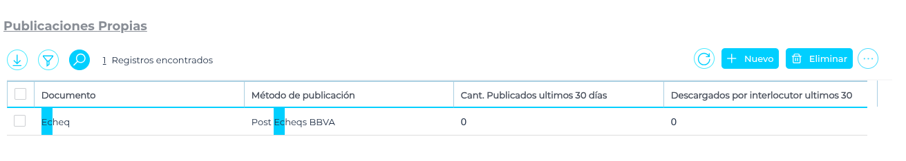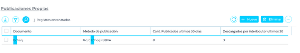 - En la grilla de Publicaciones Propias se ven los métodos activados en ese espacio de trabajo. Para activar uno método, presionamos el botón “Nuevo”