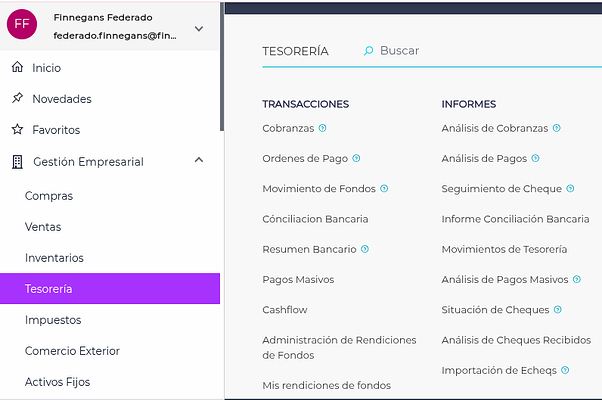 Desde el menú navegamos a Gestión Empresarial → Tesorería → Informes → Configuración para Importación Echeqs.