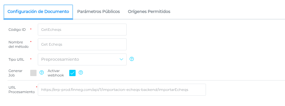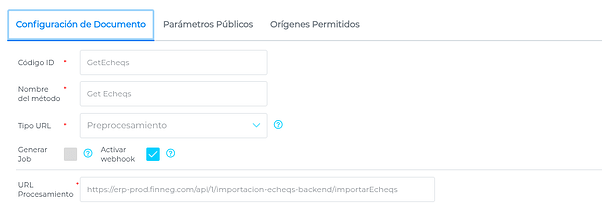 En la solapa “Configuración de Documento”, vamos a hacer check en el campo “Activar Webhook”.