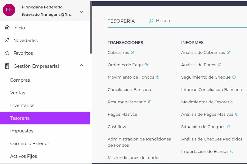 Desde el menú navegamos a Gestión Empresarial → Tesorería → Informes → Importación Echeqs.